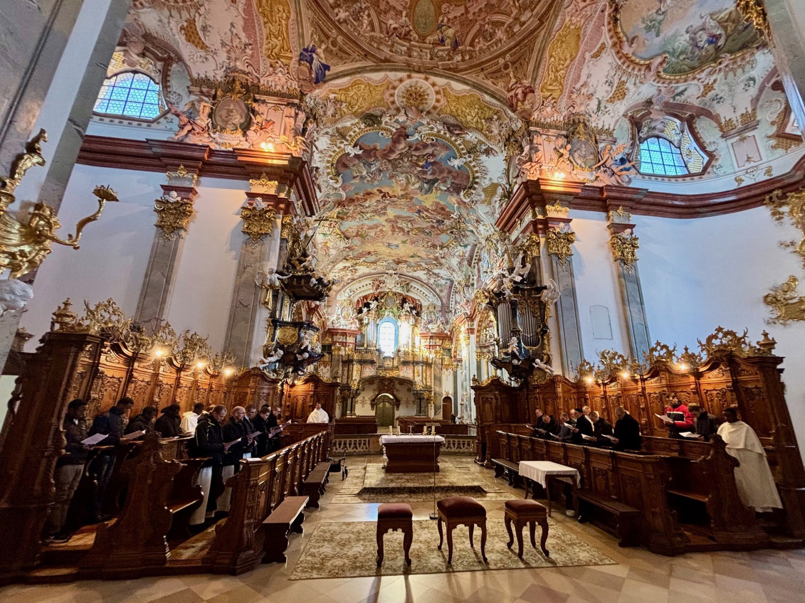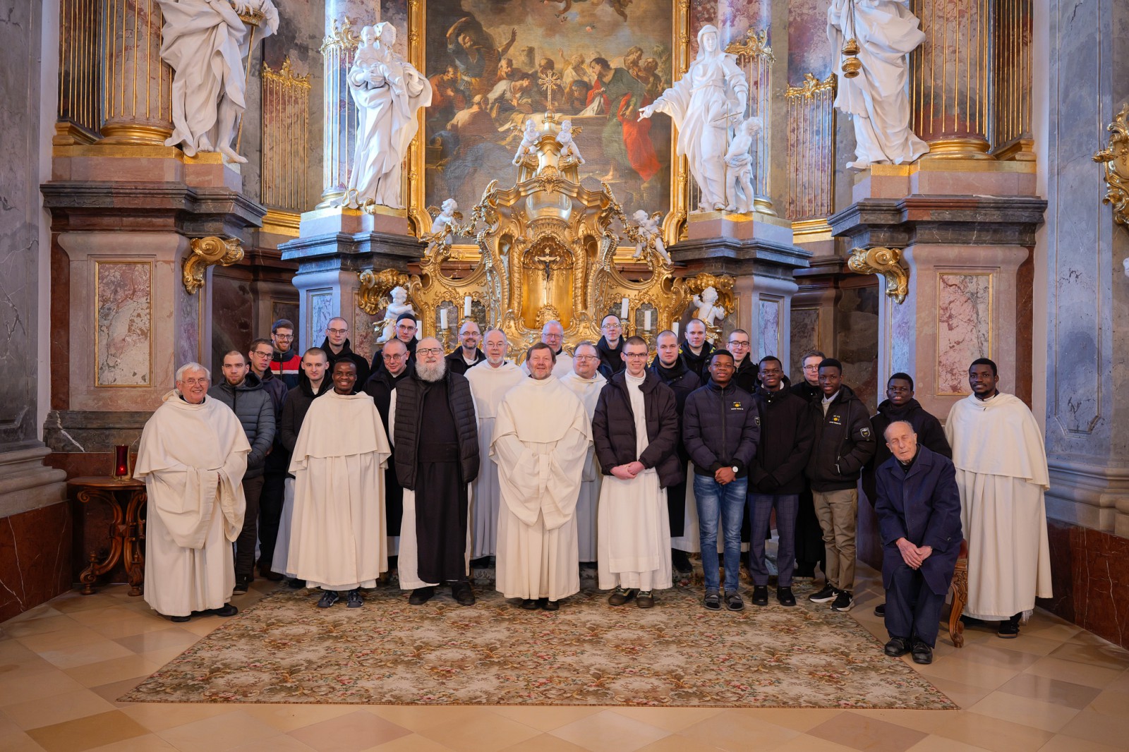 Na společnou modlitbu sexty v jejich krásném barokně-rokokovém kostele navázala společná fotografie, kterou vidíte u tohoto článku. Pan opat Reinhold během focení poznamenal, že je to první společná fotka bratří z Wilheringu a Vyššího Brodu po více jak sto letech.