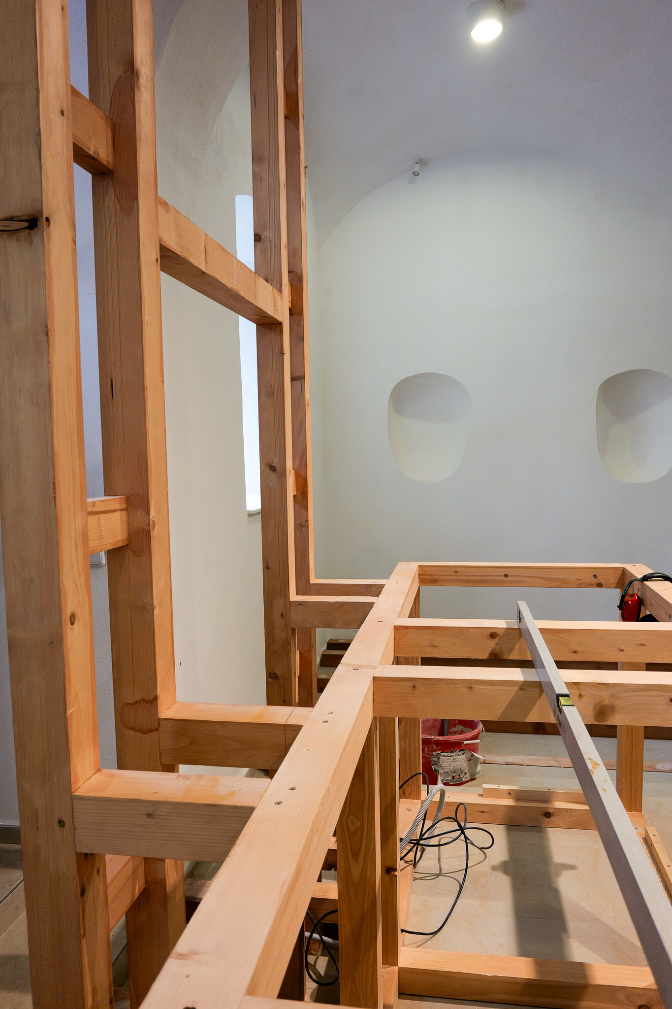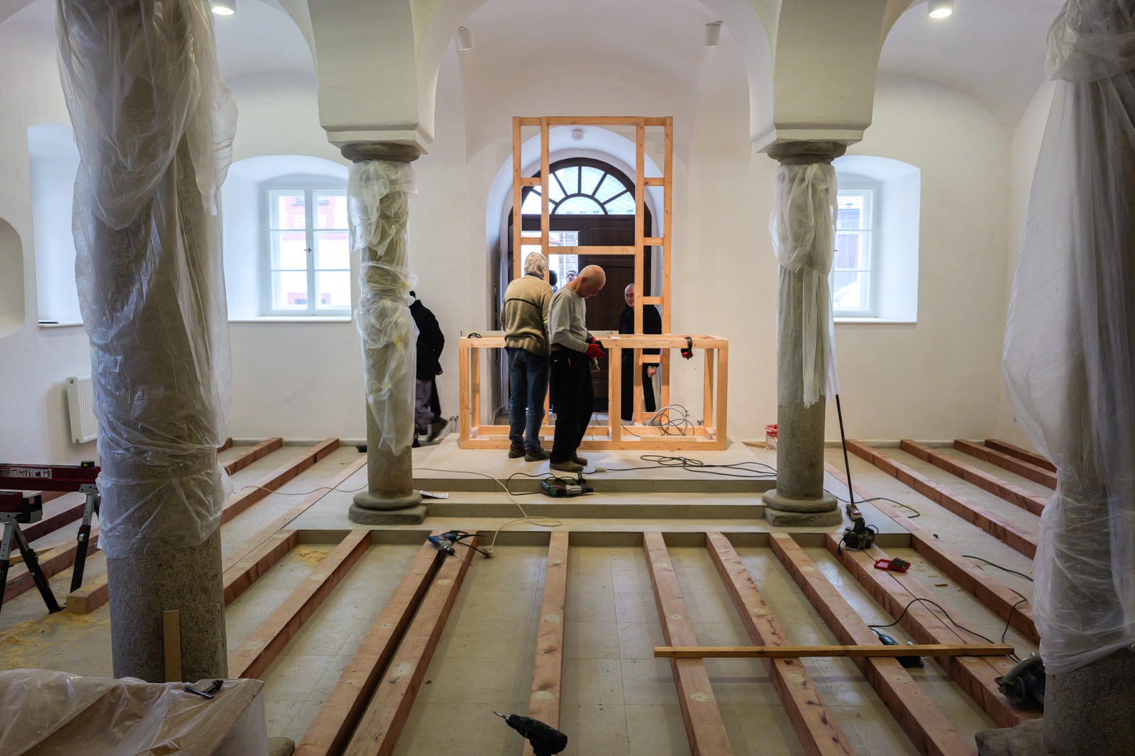 Další etapou při budování kaple sv. Rodiny je zhotovení dřevěné podlahy kněžiště. Tento týden byly zahájeny přípravné práce a položeny nosné trámy, stejně jako kostra pro budoucí hlavní oltář. V lednu by se měla zahájit výroba dřevěných kazet. Na úplné dokončení kaple a přilehlé sakristie je třeba vybrat částku ve výši přibližně 1 500 000–2 000 000 Kč. Více informací a pro případné dary viz ZDE.
