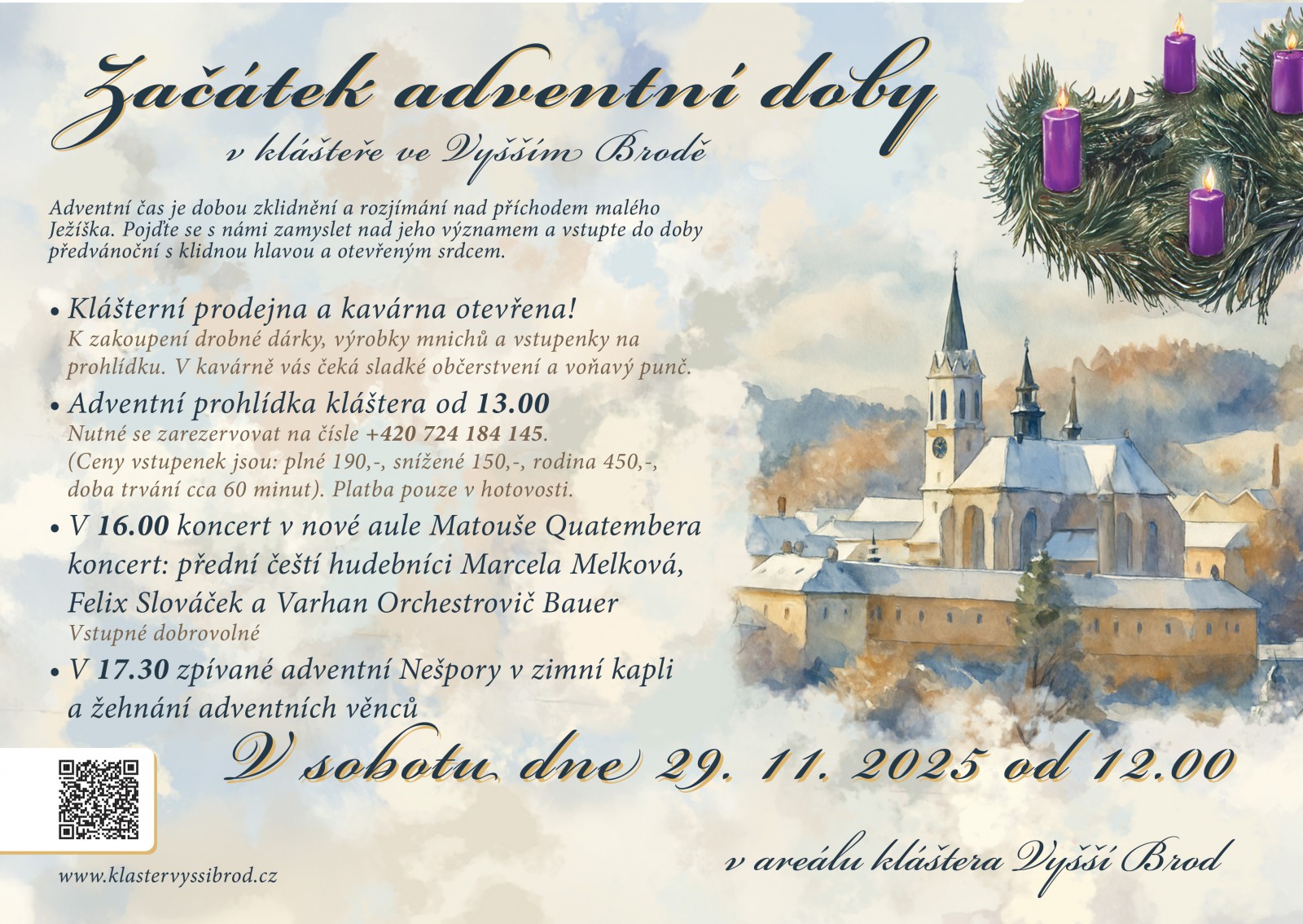 V sobotu dne 29. 11. 2025 od 12.00 v areálu cisterciáckého opatství Vyšší Brod: